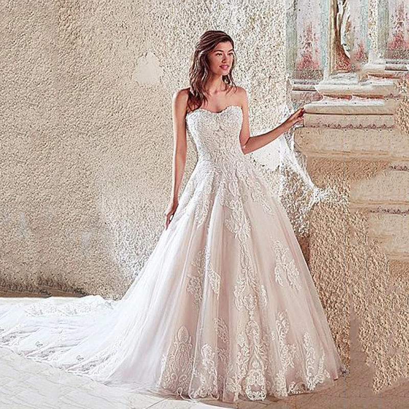 Vestidos De boda De tul De lujo, vestido De baile De corazón, vestido De boda con aplicaciones encaje con cuentas, vestido Formal De novia